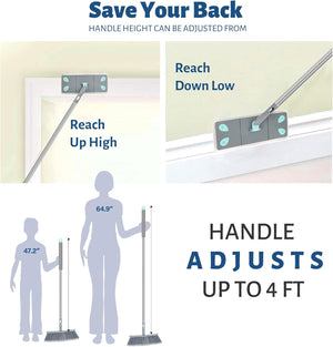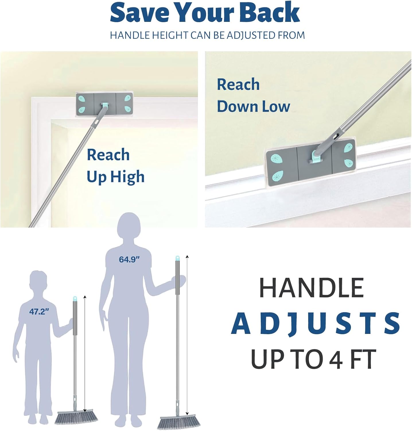 • 【Adjustable Rod Length】: The rod lengths may be combined from 30 to 48 inches, allowing simple access to difficult-to-reach regions including ceiling fans, cobwebs, walls, and lamps. The rv broom is ideal for both homes and businesses, ensuring a complete cleaning each time.