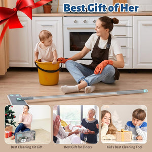 • 【2-in-1 Window Squeegee】: This package includes a versatile squeegee that makes washing windows and windshields easier.The durable rubber blade rapidly removes extra water, while the absorbent fabric keeps glass surfaces streak-free and dry.Broom and mop combo.