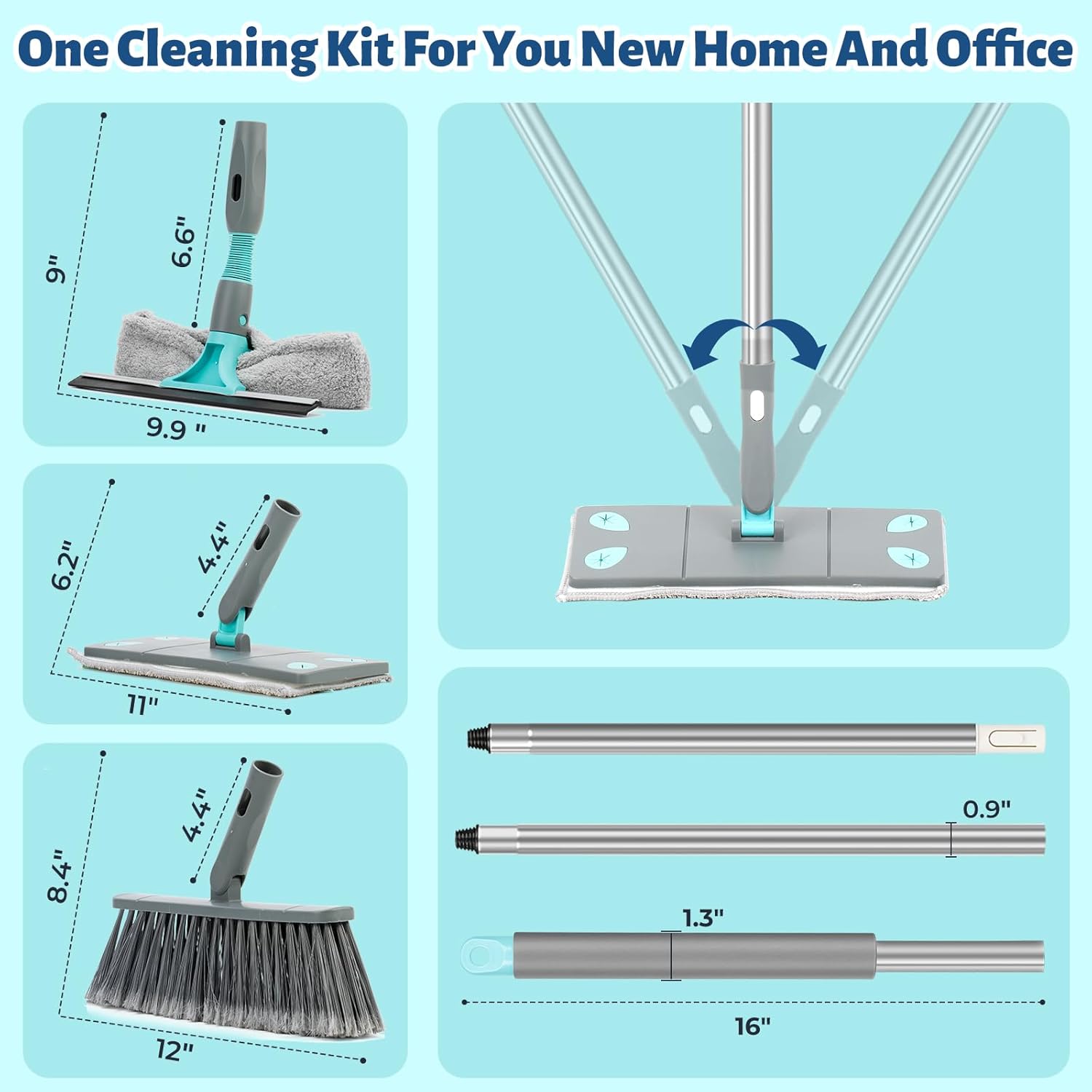 • 【Complete Broom & Mop Set】: This broom and mop set for home includes all the cleaning tools you need: an absorbent microfiber mop, a push broom, a 2-in-1 window squeegee, and adjustable rod. Perfect for household cleaning tasks as well as professional use.