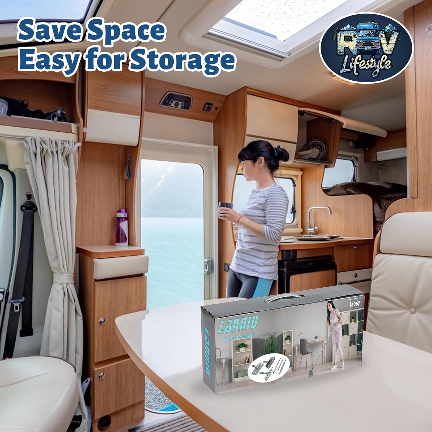 • 【Clean Anywhere】: Our broom for camper includes a soft bristle broom that sweeps up dust and debris without sucking it away, assuring longevity and effectiveness. The tapered sponge pad and robust tub brush head, which pivots 180 degrees, clean corners, recesses, and grout lines thoroughly. Ideal for RVs, bathrooms, tubs, tiles, walls, and floors.